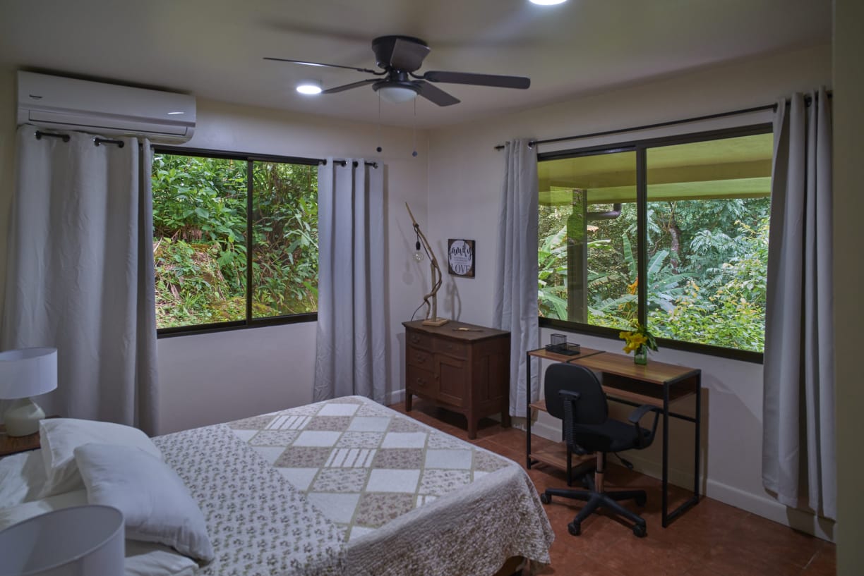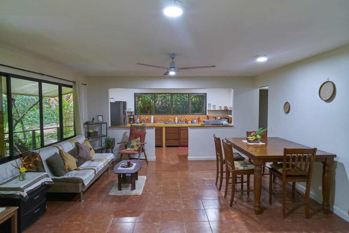 The house offers privacy and amplitude, with birds singing in the morning and the sound of the river during the rainy season — a true natural retreat.