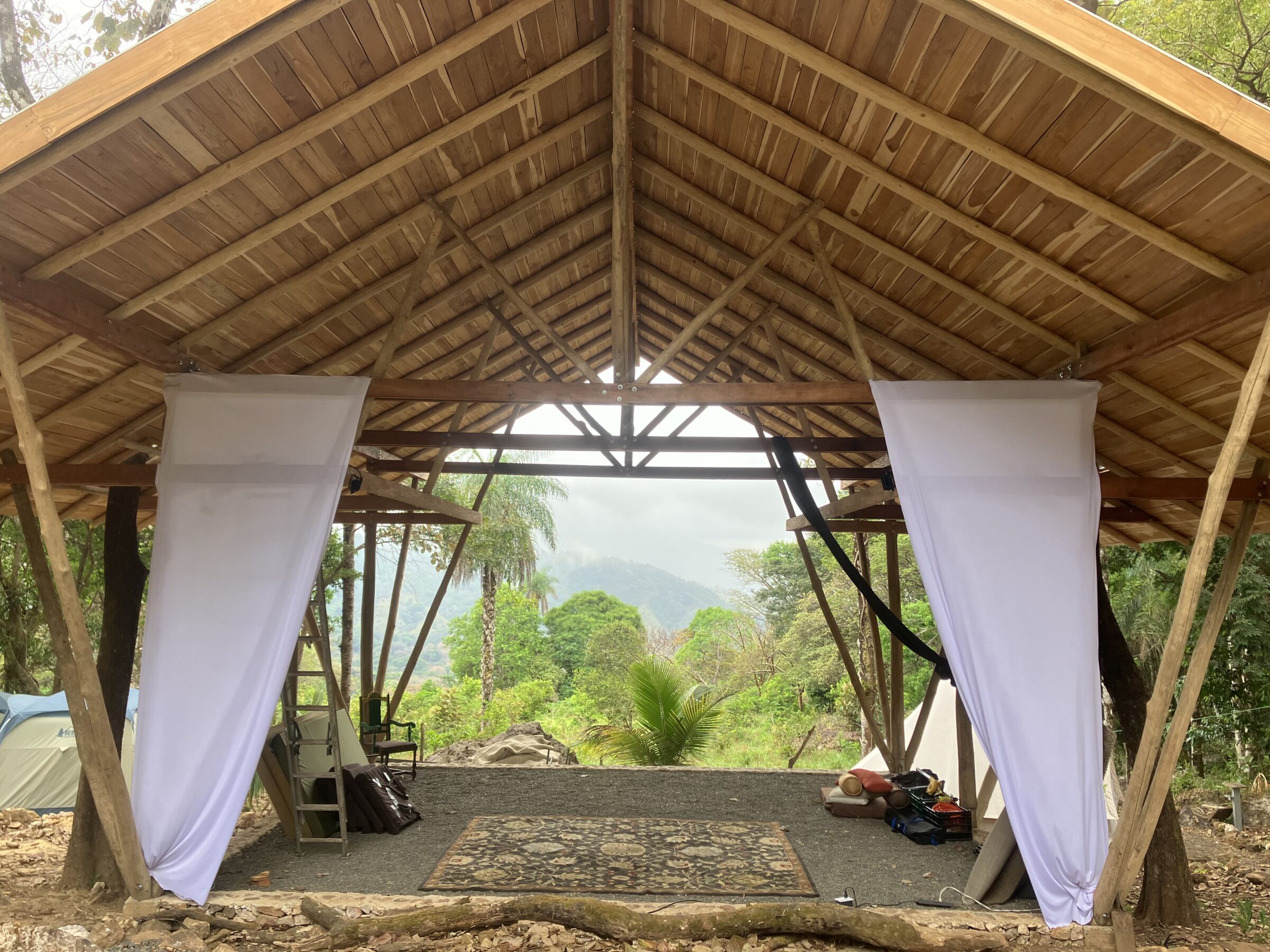 Beautiful glamping bell tents with good air flow and either two double beds or one queen size bed. Located within Finca Vida Verde inside the Tacotal Colectivo Ecovillage. Guests also have access to the community outdoor shower, dry compost toilets, and the main house with kitchen, lounge, hammocks, etc. Organic vegetarian food pantry buy-in offered by hosts. Also includes access to trails and Rio Machuca access.